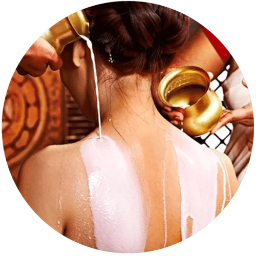 It is an amazingly relaxing therapy which uses a steady stream of warm medicated oils (Tail Dhara) or medicated buttermilk (Takra Dhara) using special devices to flow rhythmically across the forehead. This is usually done after Abhyangam. This therapy provides considerable relief from mental stress & psychosomatic disorders. It soothes your body and mind & induces sound sleep.
