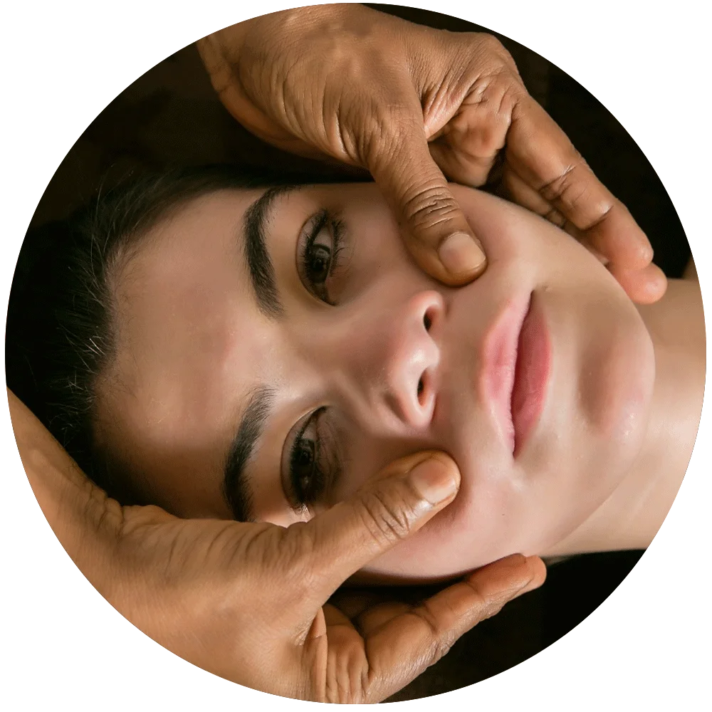 The classical method of facial massage and detoxification is done by using herbalized creams and astringent individualized according to body type. The massage component focuses on the Marma points of the face, neck, and shoulders which re-invigorates the tissues and refreshes the senses. It combines with face herbal steam therapy and the application of herbal face mask according to body type and skin type.